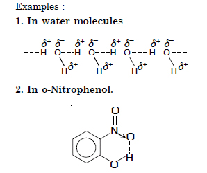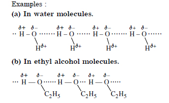 (a) Hydrogen bond. The weak electrostatic forces of attraction between the covalently bonded H–atoms of one molecule and highly electronegative atom (N, O, F) of the same or different molecule is called hydrogen bond.