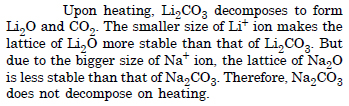 Why is Li2CO3 decomposed at a lower temperature whereas Na2CO3 at higher temperature ?
