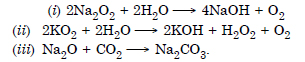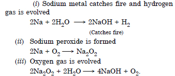What happens when (i) Sodium metal is dropped in water (ii) Sodium metal is heated in free supply of air (iii) Sodium peroxide dissolves in water ?