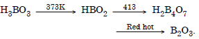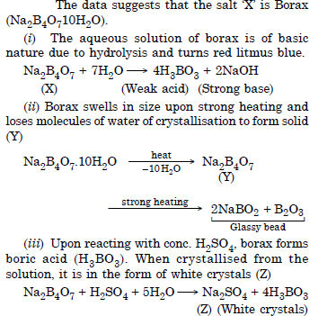 (a) When powdered borax is heated strongly in the flame of bunsen burner, it forms colourless transparent glassy (glass-like) bead made of sodium meta borate and boric anhydride