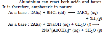 Aluminium (Al) generally exhibits +3 oxidation state in its compounds. Thallium (Tl), the last member of the group 13, is expected to show oxidation states of + 3 and + 1 (due to inert pair effect). Thus, the metals resemble in the reactions involving + 3 oxidation state. However, they differ with respect to + 1 oxidation state.