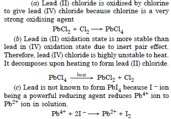 (b) lead (IV) chloride is highly unstable towards heat