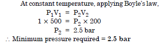 What will be the minimum pressure required to compress 500 dm3 of air at 1 bar to 200 dm3 at 30º C ?