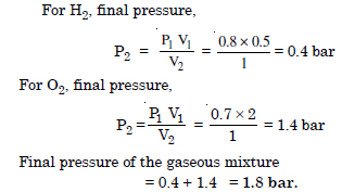 What will be the pressure of the gas mixture when 0.5 L of H2 at 0.8 bar and 2.0 L of oxygen at 0.7 bar are introduced in 1L vessel at 27°C ?