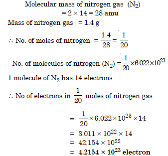 Calculate the total number of electrons present in 1.4 g of nitrogen gas.