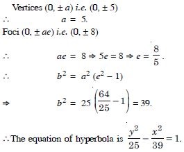 Vertices (0, 5) ; foci (0, 8).