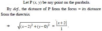 Find the equation of the parabola with focus (2, 0) and directrix x = – 2.