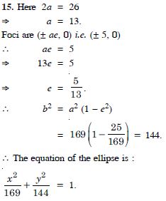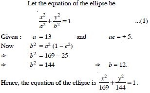 Find the equation of the ellipse whose vertices are ( 13, 0) and foci are ( 5, 0).