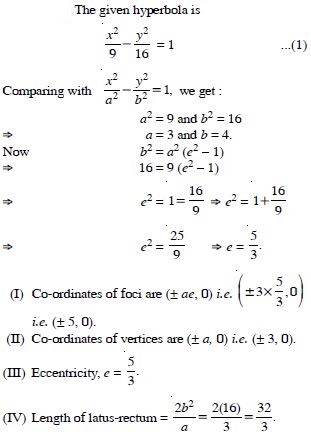 Find the co-ordinates of the foci and the vertices, the eccentricity and length of the latus-rectum of the hyperbola :