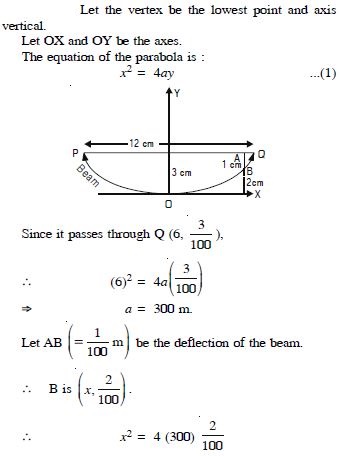 A beam is supported at its end points by supports which are 12 metres apart. Since the load is concentrated at its centre, there is a deflection of 3 cm at the centre and the deflected beam is in the shape of a parabola. How far from the centre is the deflection 1 cm ?