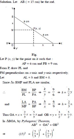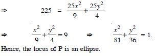 A rod AB of length 15 cm rests in between two co-ordinate axes in such a way that the end point A lies on the x-axis and end point B lies on y-axis. A point P (x, y) is taken on the rod in such a way that AP = 6 cm. Show that the locus of P is an ellipse.