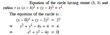 Centre (0, 2) and radius 2.