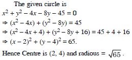 x2 + y2 + 2gx + 2fy + c = 0 ...(1)