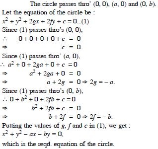 Find the equation of the circle passing through (0, 0) and making intercepts a and b on the coordinate axes.