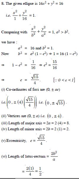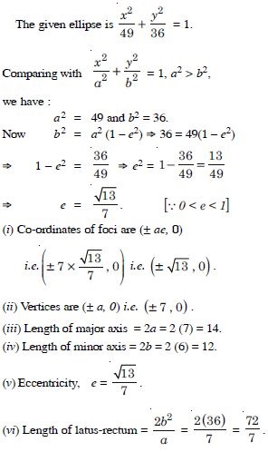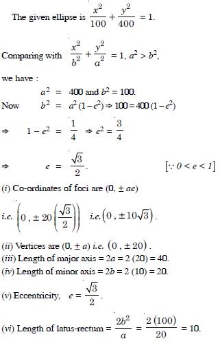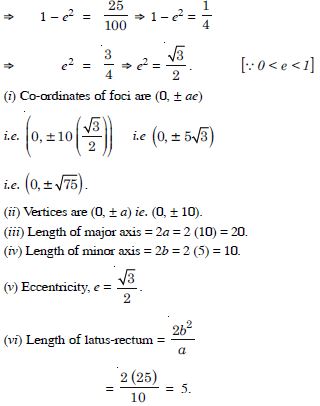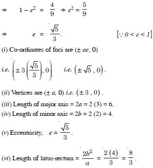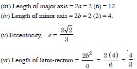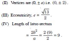 (III) Vertices are (0, a) i.e. (0, 3). (IV) Length of major axis = 2a = 2(3) = 6. (V) Length of minor axis = 2b = 2(2) = 4.