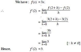 Find the derivative at x = 2 of the function f(x) = 3x.