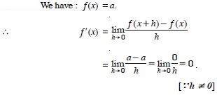 Find the derivative of the constant function f (x) = a for a fixed real number a.