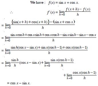 Find the derivative of ‘f’ from the first principle, where ‘f’ is given by :