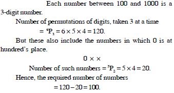 How many numbers lying between 100 and 1000 can be formed with digits 0, 1, 2, 3, 4, 5, if repetition of the digits is not allowed ?