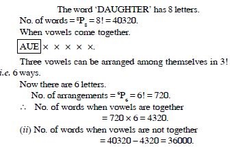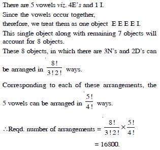 Reqd. number of arrangements = Number of arrangements without any restriction – Number of arrangements when vowels occur together = 1663200 – 16800 [Using parts (i) & (ii)] = 1646400.