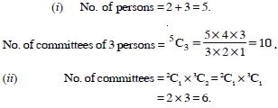 A committee of 3 persons is to be constituted from a group of 2 Men and 3 Women. In how many ways can this be done ? How many of these committees would consist of 1 Man and 2 Women ?