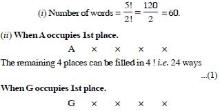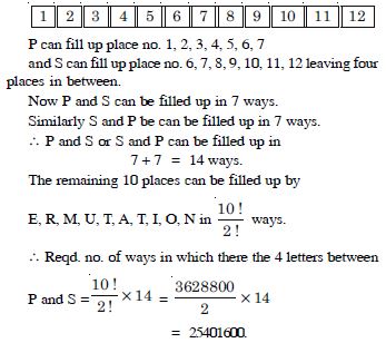 When the words start with P and end with S P × × × × × × × × × × S Between P and S, there are 10 places, which are to be filled up. Out of these, T is repeated twice.