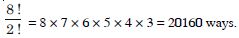 = 8P8 = 8 ! = 8.7.6.5.4.3.2.1= 40320.