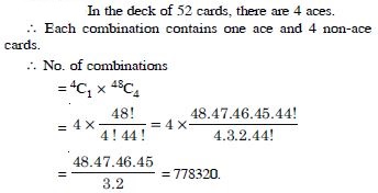 Determine the number of 5 card combinations out of a deck of 52 cards if there is exactly one ace in each combination.