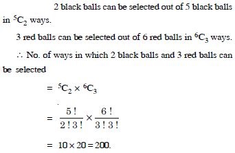 A bag contains 5 black and 6 red balls. Determine the number of ways in which 2 black and 3 red balls can be selected.