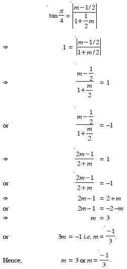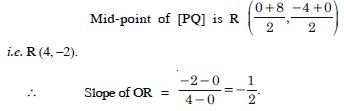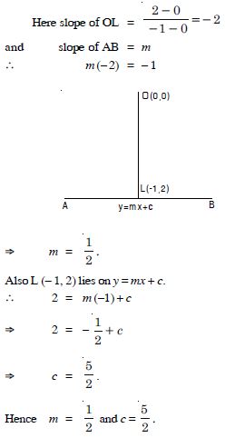 The perpendicular from the origin to the line y = mx + c meets it at the point (– 1, 2). Find the values of m and c.