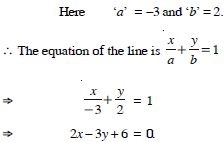 Find the equation of the line, which makes intercepts –3 and 2 on the x- and y-axes respectively.
