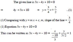 Equation of a line is 3x – 4y + 10 = 0. Find its :