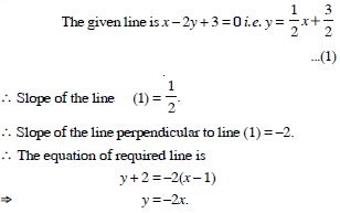 Find the equation of a line perpendicular to the line x – 2y + 3 = 0 and passing through the point (1, –2).