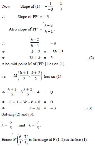 Assuming that straight line works as the plane mirror for a point, find the image of the point (1, 2) in the line x – 3y + 4 = 0.