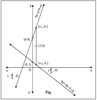 5x – y + 4 = 0 and 3x + 4y – 4 = 0