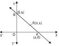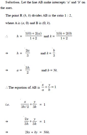 Point R (h, k) divides a line segment between the axes in the ratio 1 : 2. Find the equation of the line.