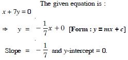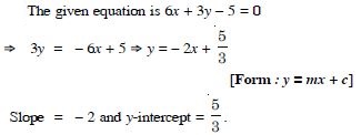 (i) slope (ii) x- and y-intercepts