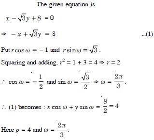 Reduce the following equations into normal form. Find their perpendicular distance from the origin and angle between perpendicular and the positive x-axis.