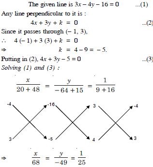 Find the co-ordinates of the foot of perpendicular from a point (– 1, 3) to the line 3x – 4y – 16 = 0.