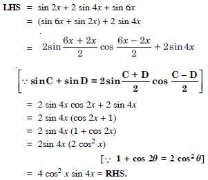 sin 2x + 2 sin 4x + sin 6x = 4 cos2x sin 4x.