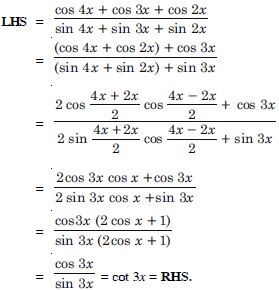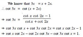 cot x cot 2x – cot 2x cot 3x – cot 3x cot x = 1.