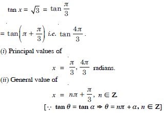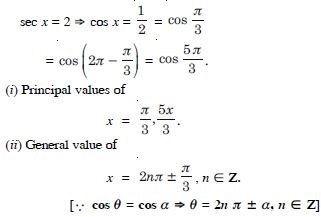 Find the principal and general solutions of the following equations :