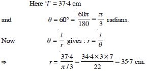 central angle of 60 intercepts an arc of length 37·4 cm. (Use = 22/7)