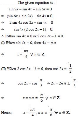 Solve : sin 2x – sin 4x + sin 6x = 0.