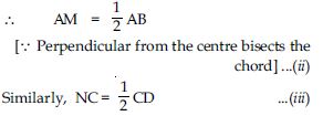 The lengths of two parallel chords of a circle are 6 cm and 8 cm. If the smaller chord is at distance 4 cm from the centre, what is the distance of the other chord from the centre?