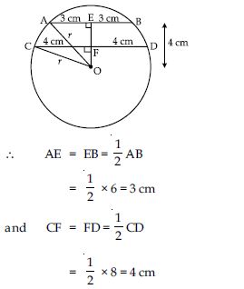 Let AB = 6 cm and CD = 8 cm are the chords of circle with centre O.
