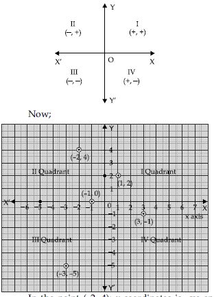 We locate the quadrants or axes corresponding to the given points with the help of following: