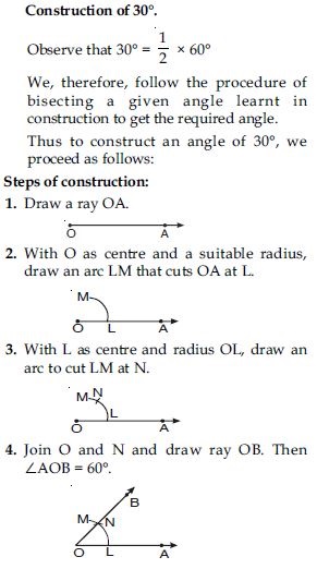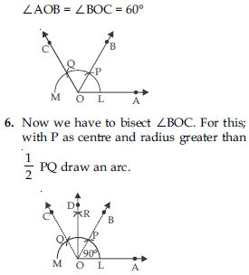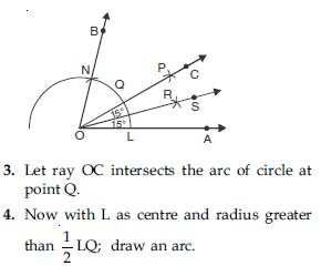 2. Now bisect ∠AOB by ray OC such that ∠BOC = ∠AOC = 30 [Note: Follow the same steps as done in construction of 30 in Q. No. 3 part (i).]
