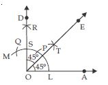 8. Join O and R and draw ray OD. Then ∠AOD is the required angle of 90. Verification: Measure ∠AOD, you will see