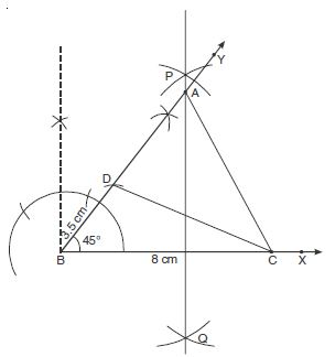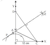 5. Draw perpendicular bisector PQ of CD intersecting BY at a point A.